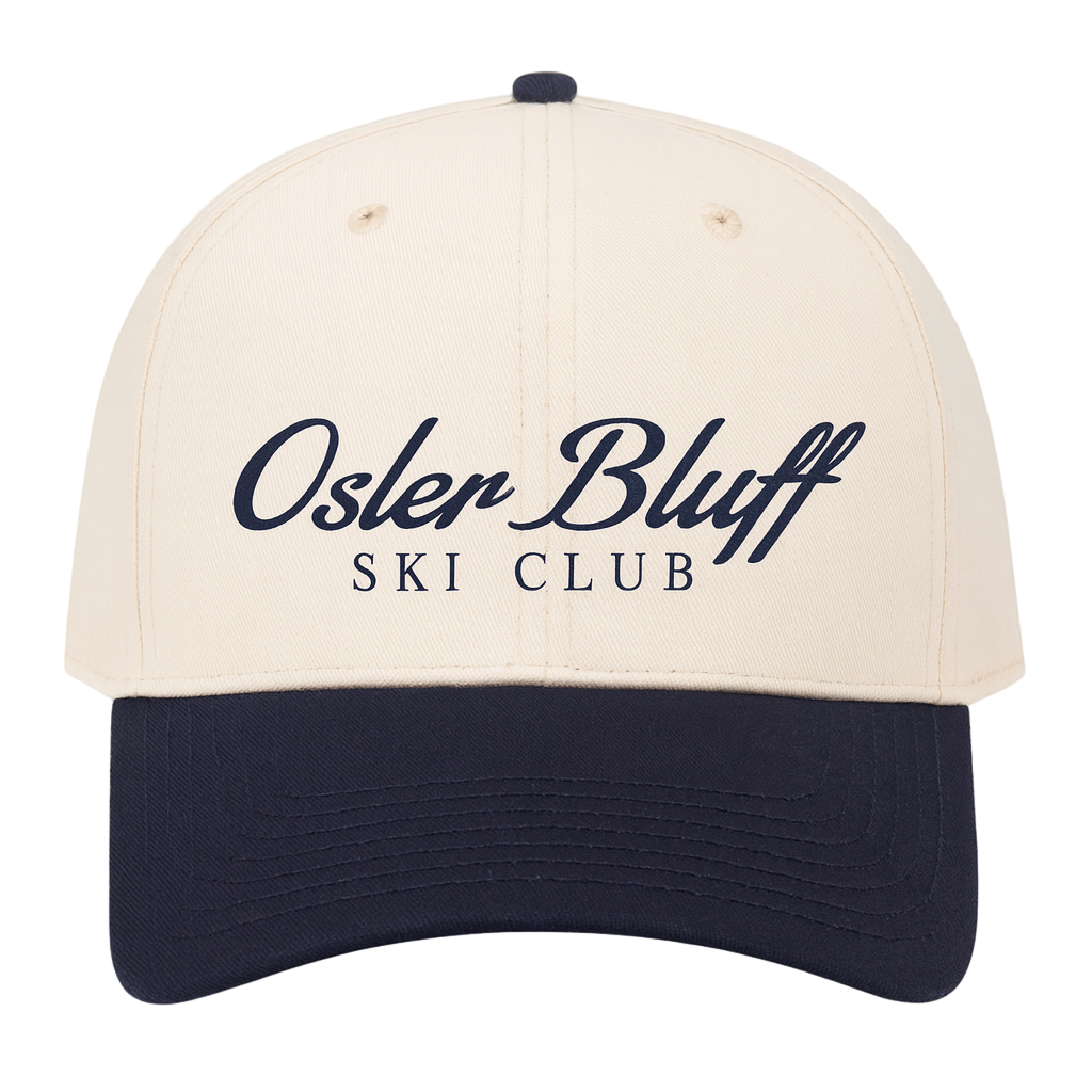 This Structured 5 Panel Mid Profile Caps has become a favourite with its natural colour and navy brim with Osler Bluff Ski Club on the front.