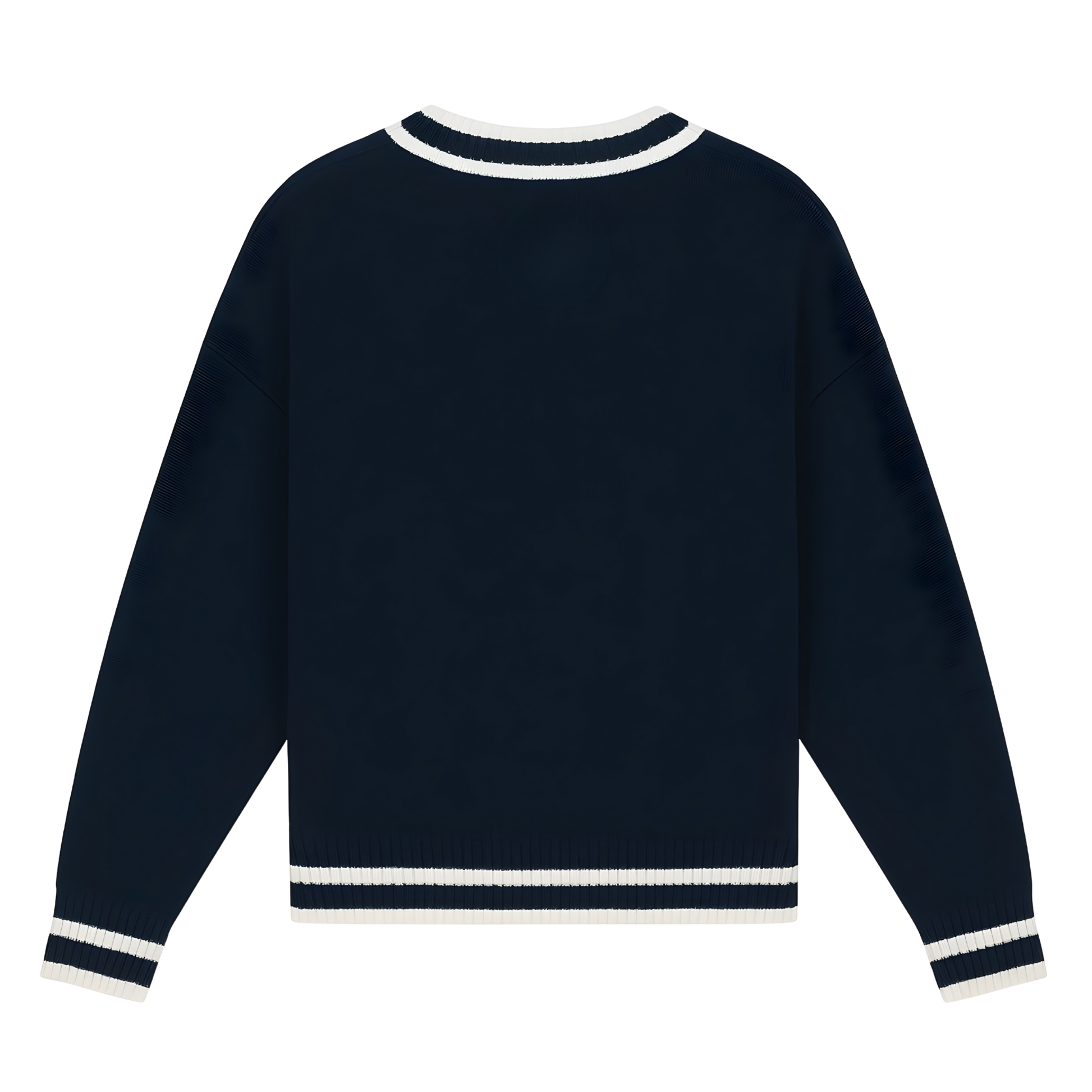 This navy and white knit sweater delivers effortless style and all-day comfort in one versatile piece. Perfect for layering or wearing solo, it's the wardrobe essential that works as hard as you do.